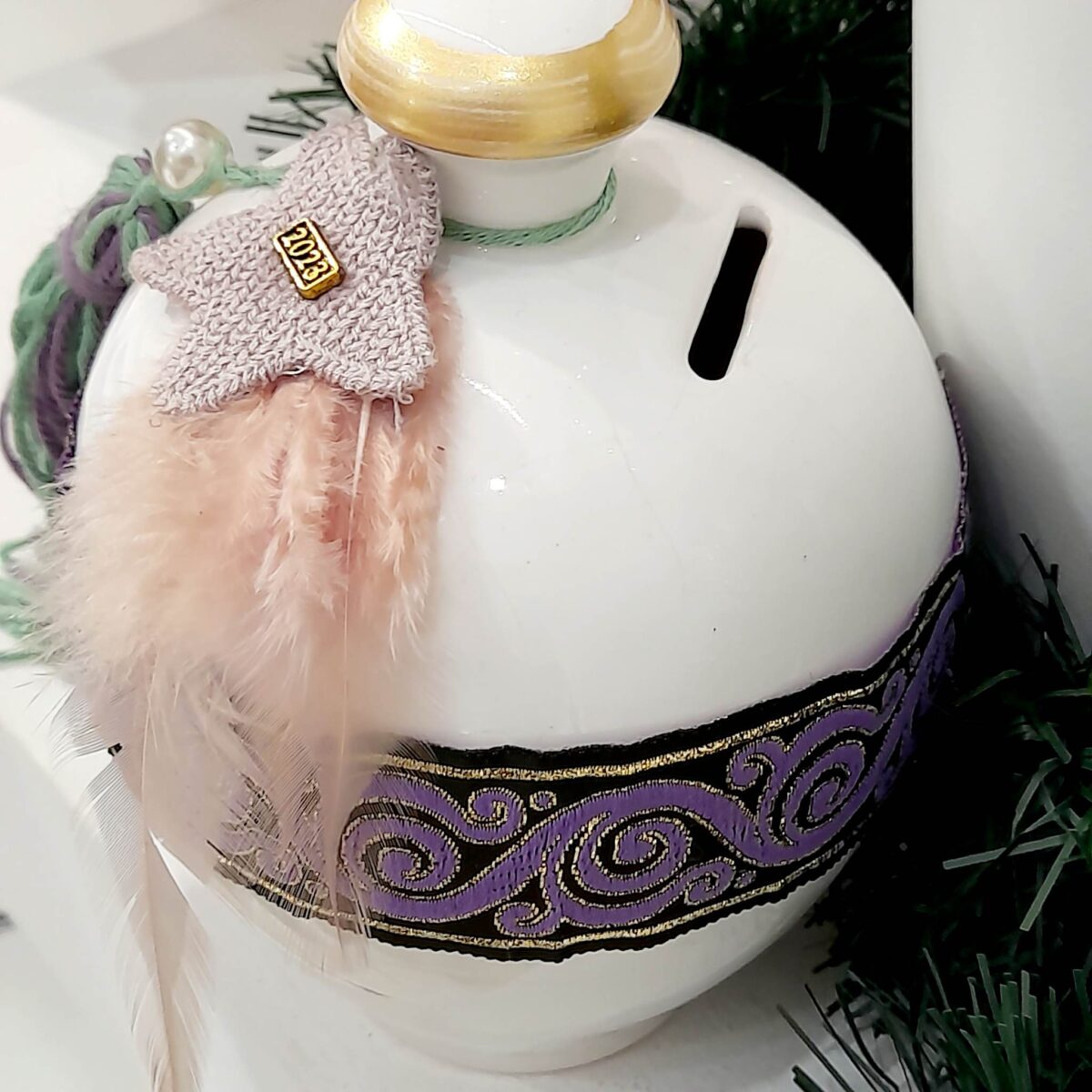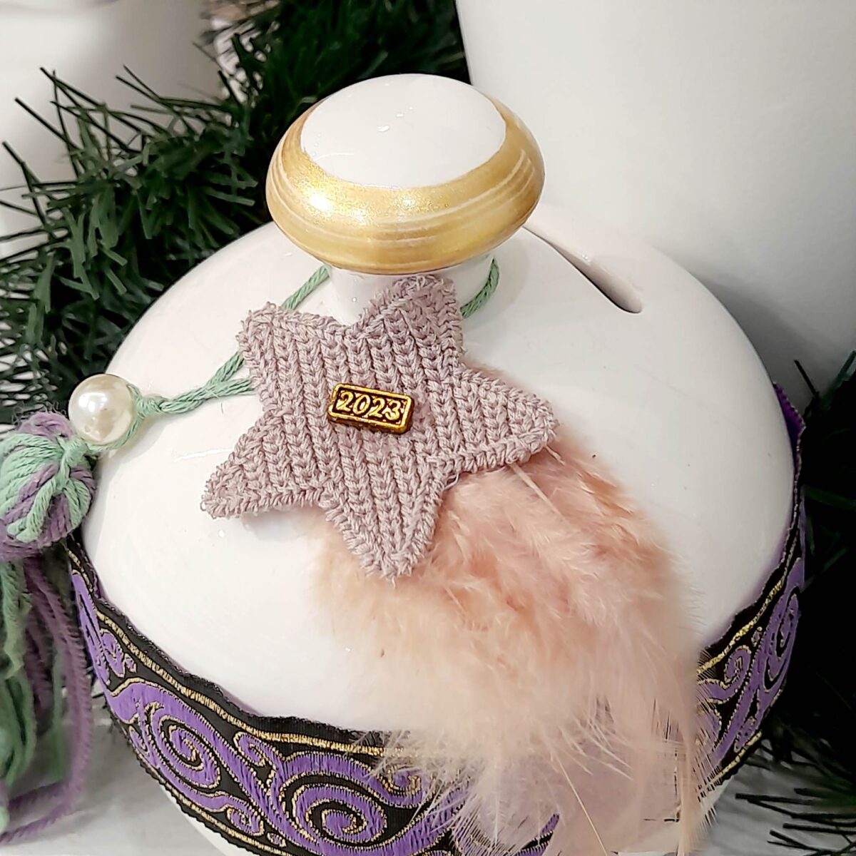 Κουμπαράς χειροποίητος με αστέρι υφασμάτινο και φούντα χειροποίητη.