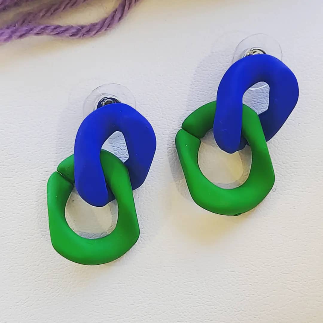 Σκουλαρίκια σε μπλε και πράσινους χρωματισμούς.