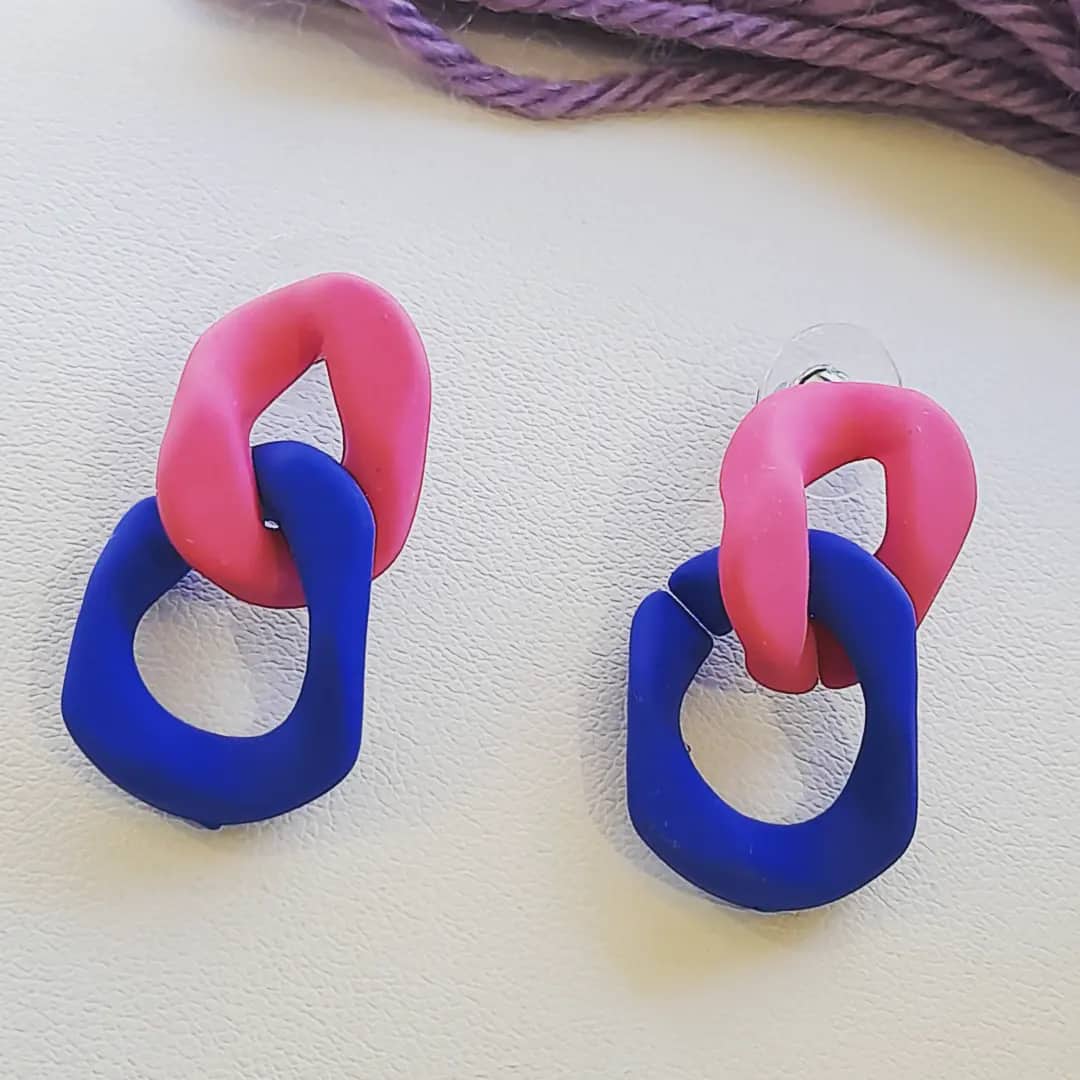 Σκουλαρίκια φούξια με μπλε χρώμα.
