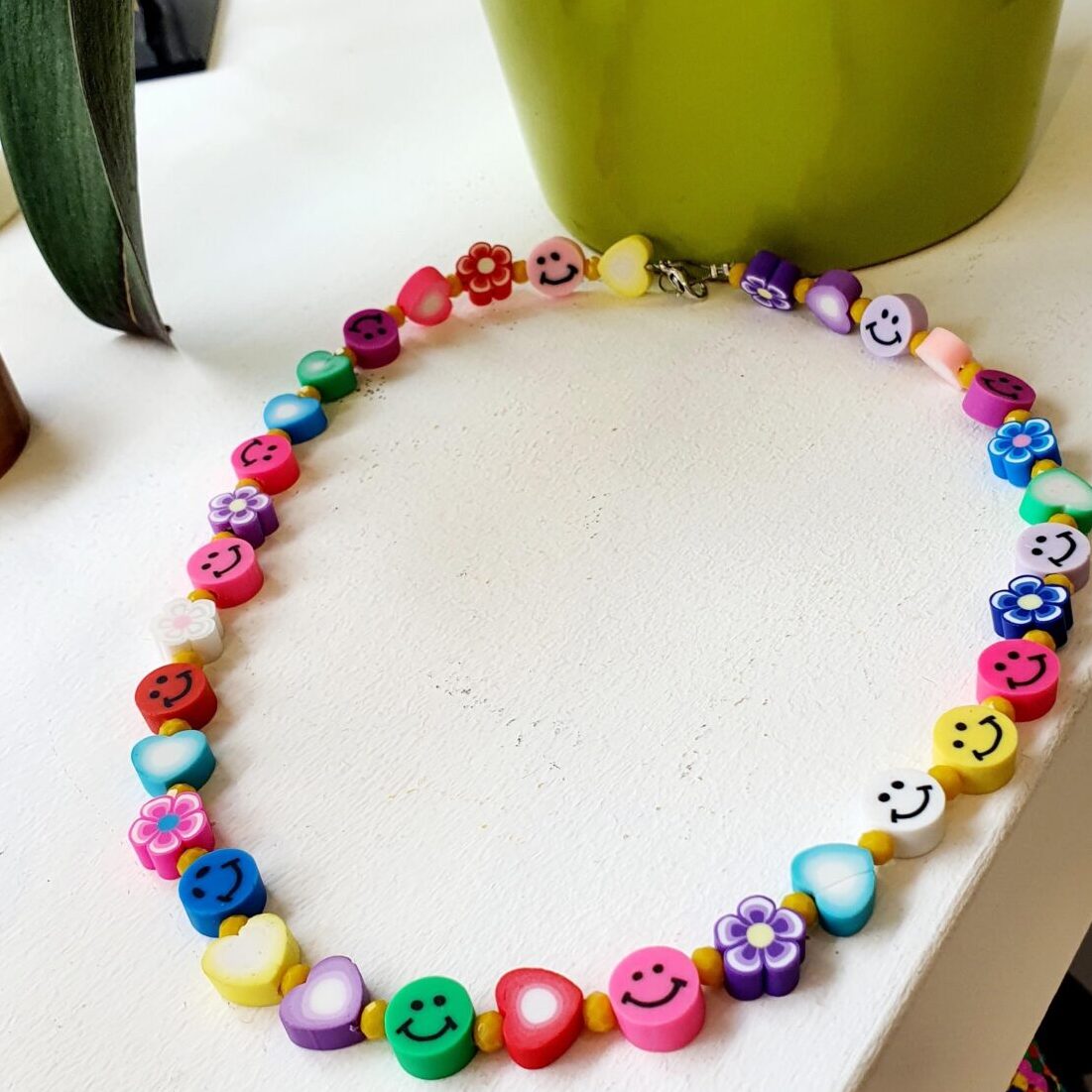 Κολιέ με χρωματιστές καρδούλες , λουλούδια και χαμόγελα από φίμο!