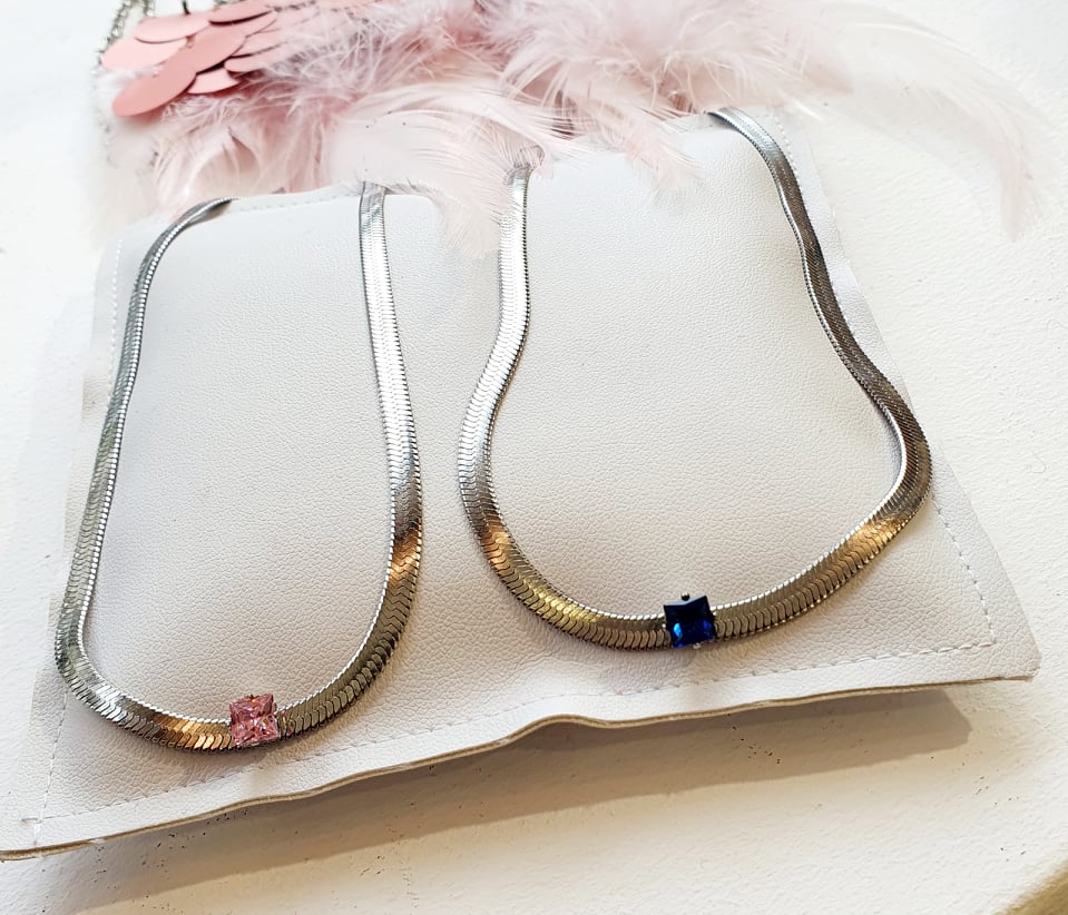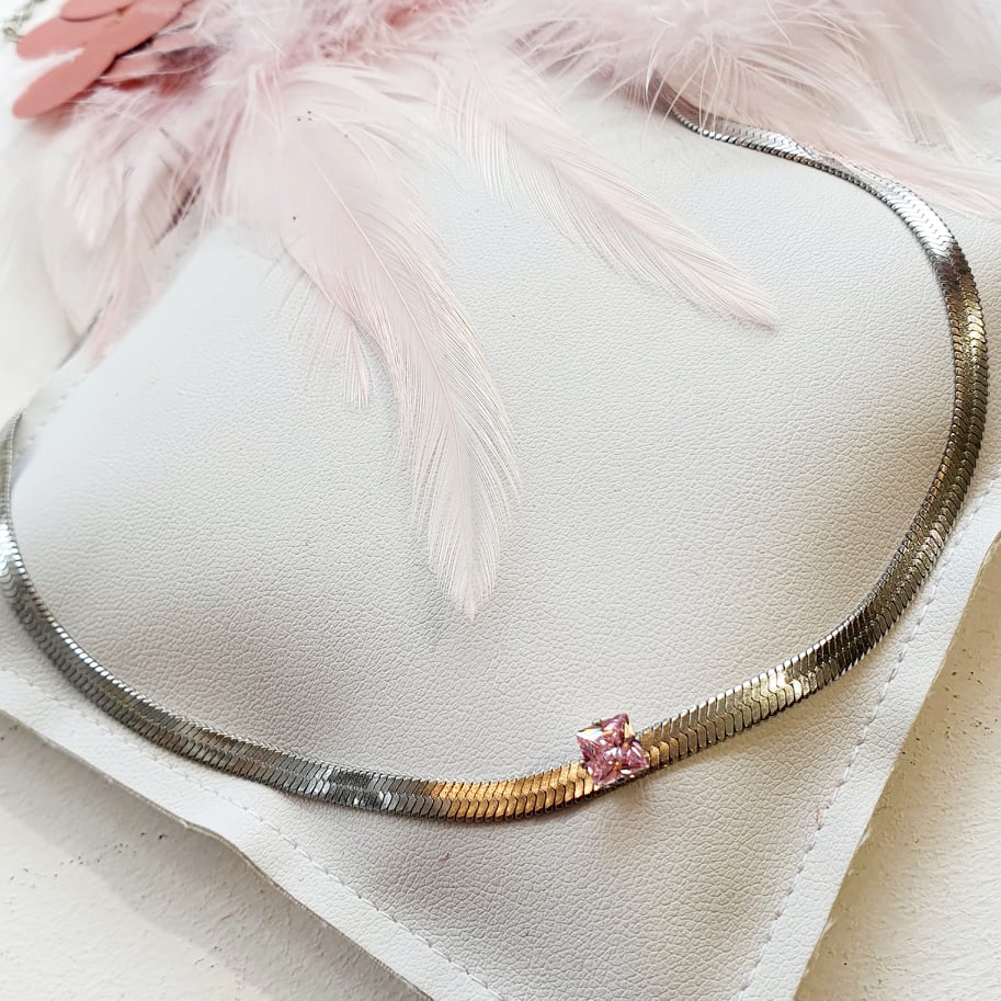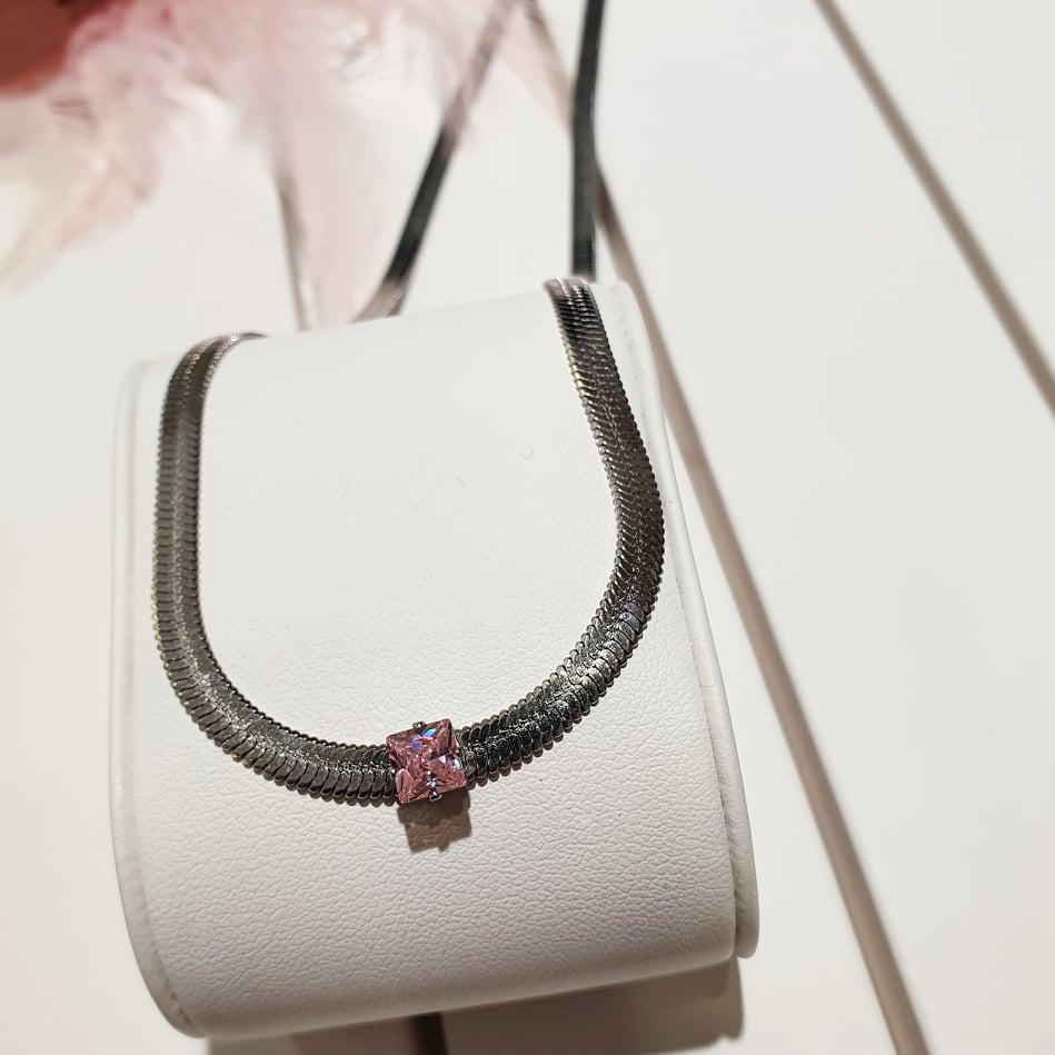 Ατσάλινη αλυσίδα κολιέ snake με στρασάκι roz!
