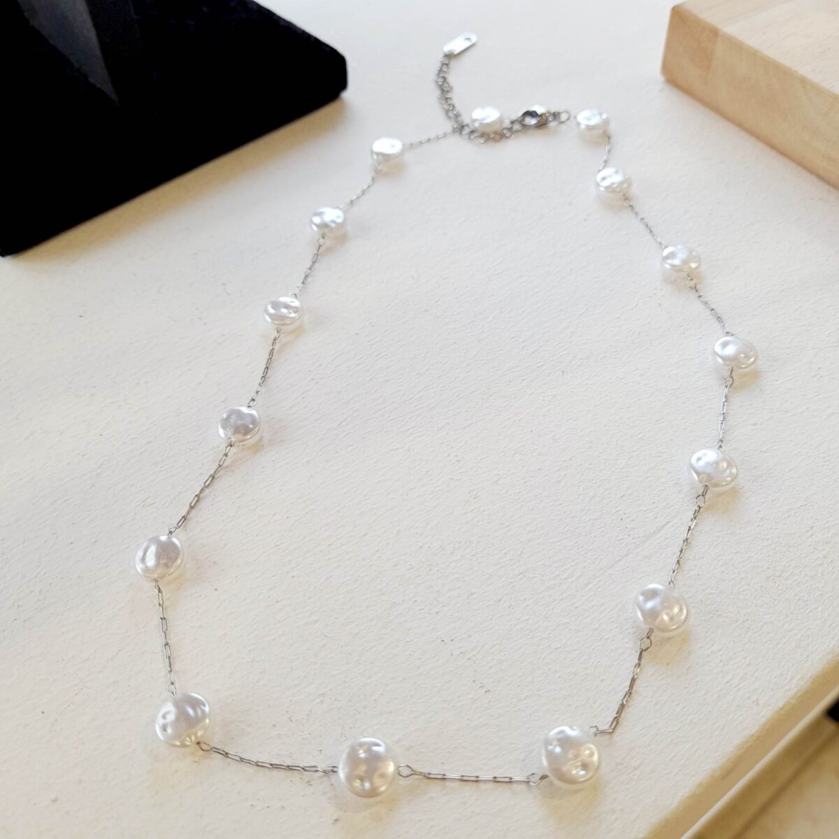 Ατσάλινο ασημένιο κολιέ με στρογγυλά μαργαριτάρια.