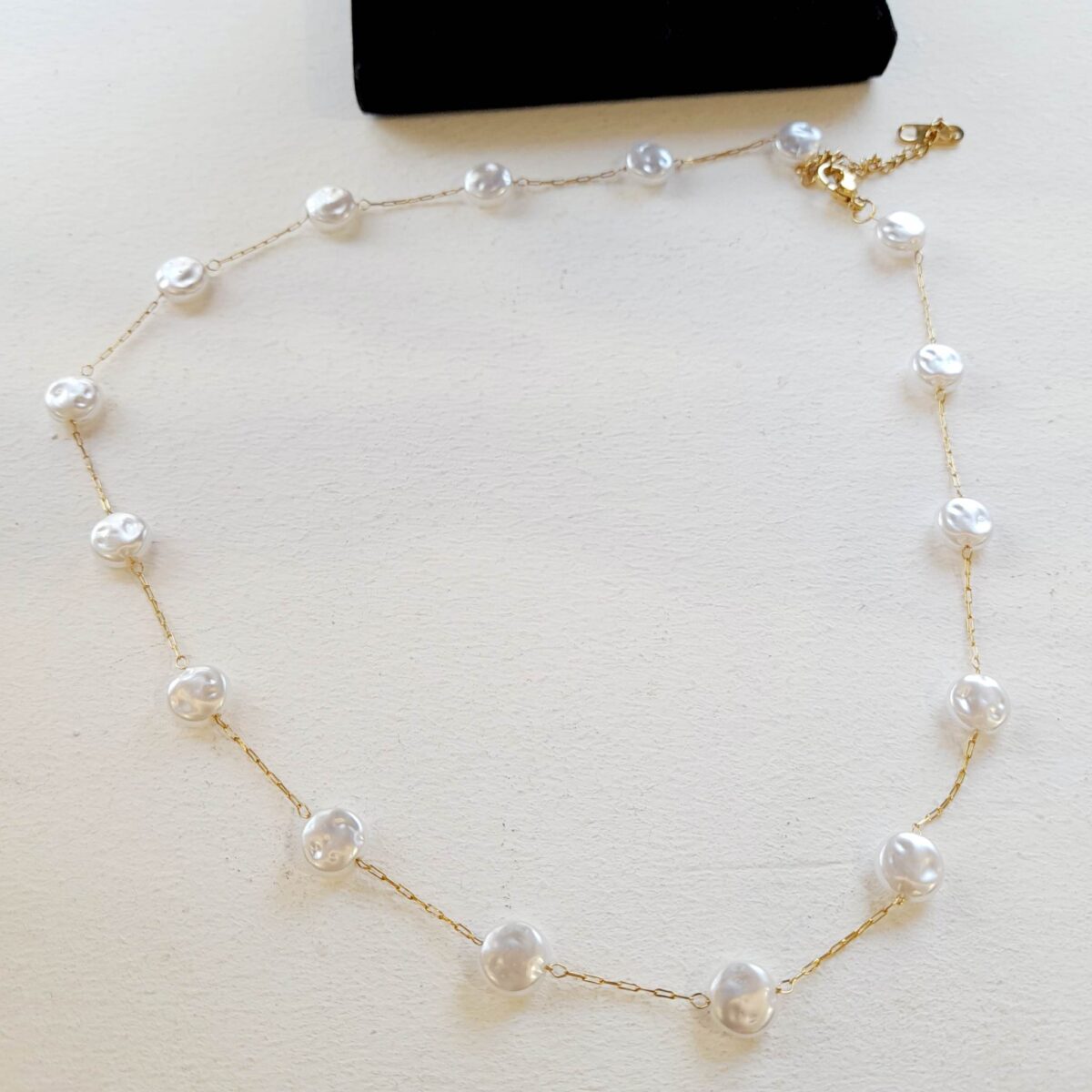 Ατσάλινο χρυσό κολιέ με στρογγυλά μαργαριτάρια.