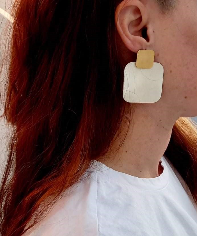 Ορειχάλκινα σκουλαρίκια σε ασημί και χρυσό χρώμα! Διαστάσεις: 5cm ύψος, 4cm πλάτος