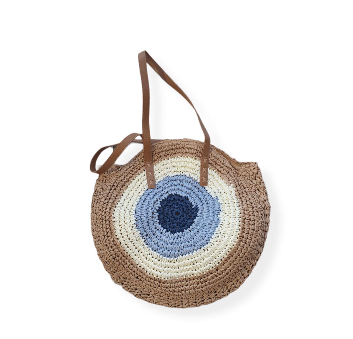 Ψάθινη στρογγυλή τσάντα μάτι, αρκετά ευρύχωρη!