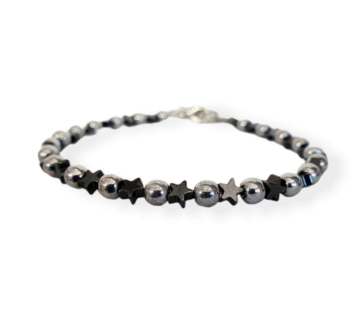 Βραχιόλι με μπίλιες αιματίτη και αστεράκια και ατσάλινο κούμπωμα!