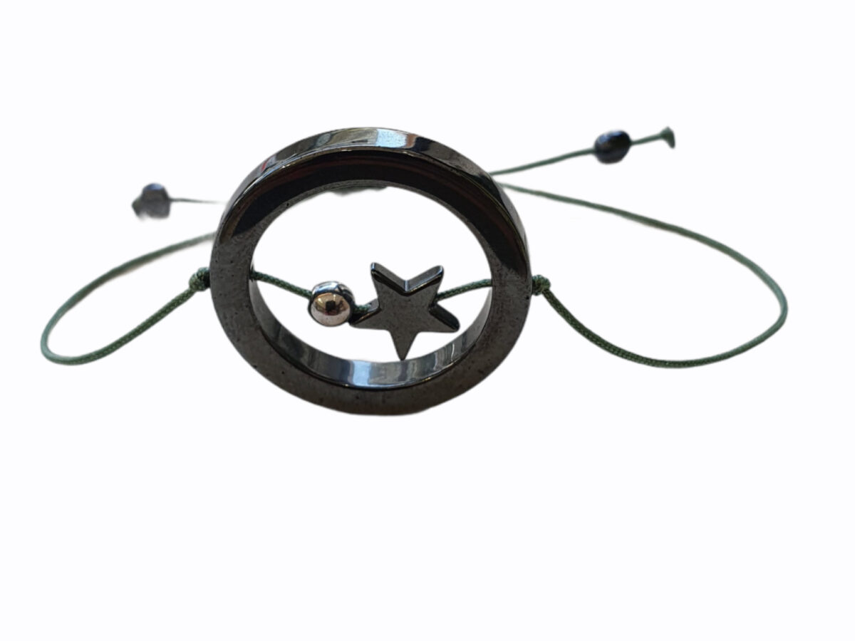 Χειροποίητο βραχιόλι με στοιχεία αιματίτη και κορδόνι στο χρώμα της μέντας!